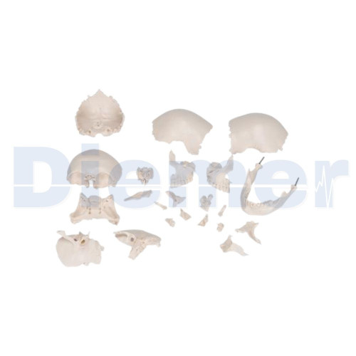 Las conexiones entre los huesos del modelo son estables y poco visibles y resulta muy sencillo montar y desmontar cada uno de los huesos porque las suturas de este modelo de cráneo están muy simplificadas. Los 22 huesos están representados en un color idéntico al del hueso natural.