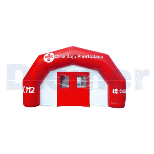 Carpa de acción rápida PMA, realizada en poliéster de 1.100 dtex, con recubrimiento de cloruro de polivinilo en ambas caras, tratamiento antipúdrico y UV cosido con hilo hidrófugado para repeler el agua en las costuras y totalmente estanco en caso de lluvia. Disponemos de varios tamaños de carpas.